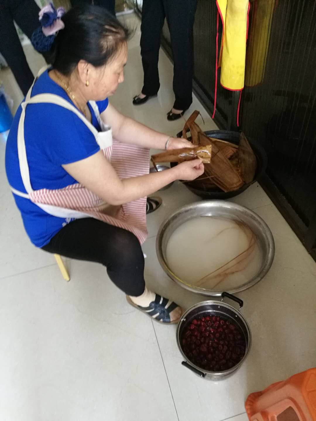 端午佳節(jié)期間,廚房大姐在精心為公司員工包粽子