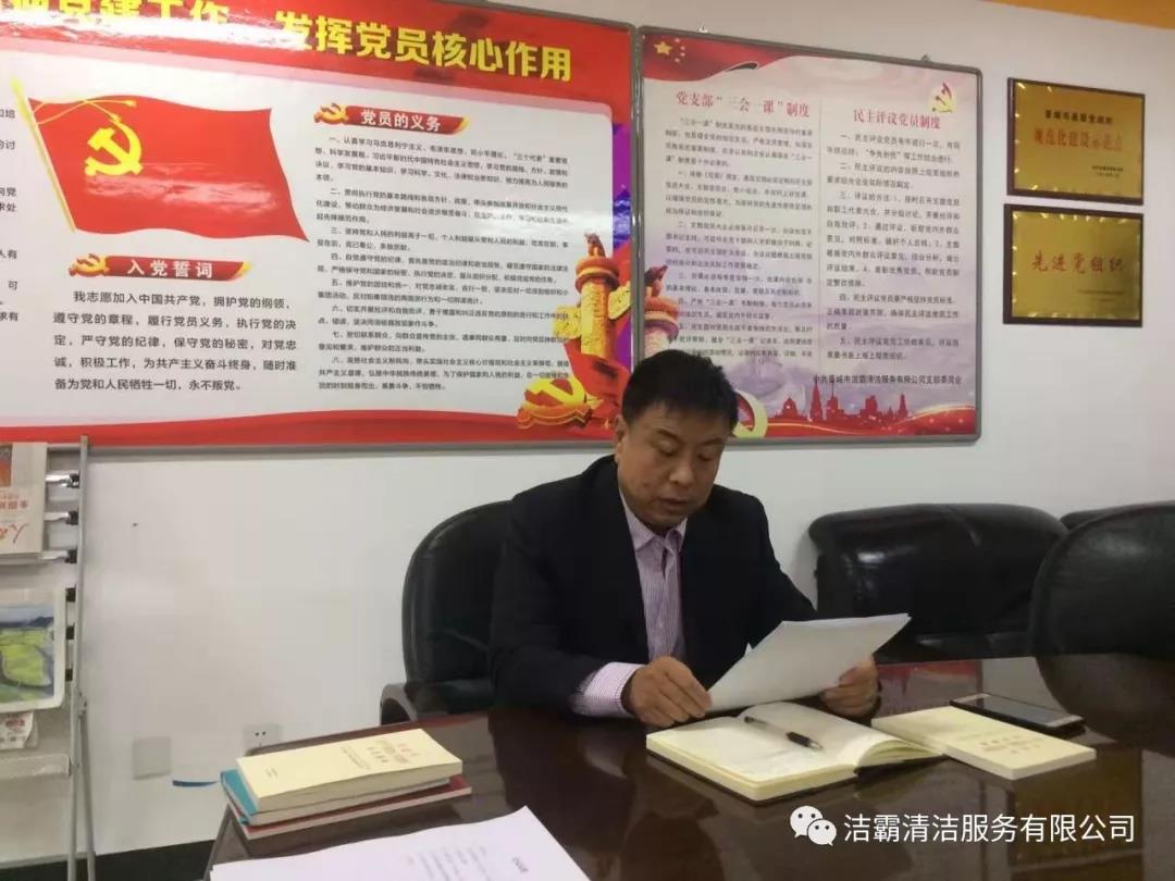 為深入推進(jìn)“不忘初心、牢記使命”主題教育,10月9日下午,按照支部部署安排,潔霸清潔黨支部開(kāi)展“不忘初心、牢記使命”主題黨日活動(dòng),支部全體黨員及入黨積極分子參加了這次活動(dòng)。