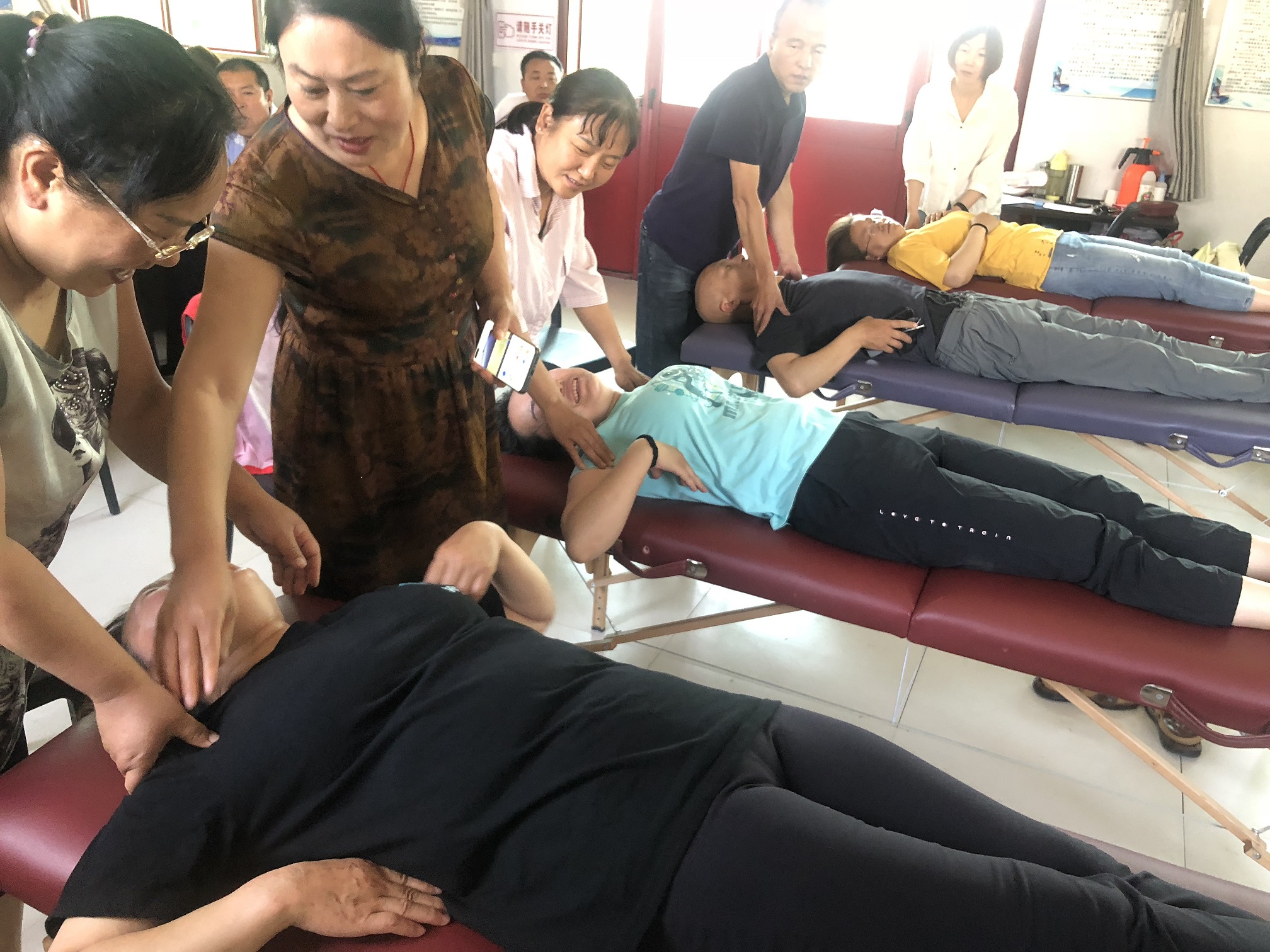 此次保健按摩師培訓(xùn),我校聘請(qǐng)了有多年按摩經(jīng)驗(yàn)和豐富授課經(jīng)驗(yàn)的按摩老師給學(xué)員講課。培訓(xùn)過(guò)程中,采用理論和實(shí)操相結(jié)合的培訓(xùn)形式。老師先將按摩理論知識(shí)教給學(xué)員,再將按摩流程演示給學(xué)員看,邊操作邊講解,再讓學(xué)員們動(dòng)手實(shí)際操作,老師在一旁指導(dǎo),及時(shí)糾正學(xué)員們不正確的按摩手法和流程。經(jīng)過(guò)7天的按摩培訓(xùn),學(xué)員們基本都掌握了頭部、面部、胸腹部、背部、腿部等處的按摩手法和按摩流程。
