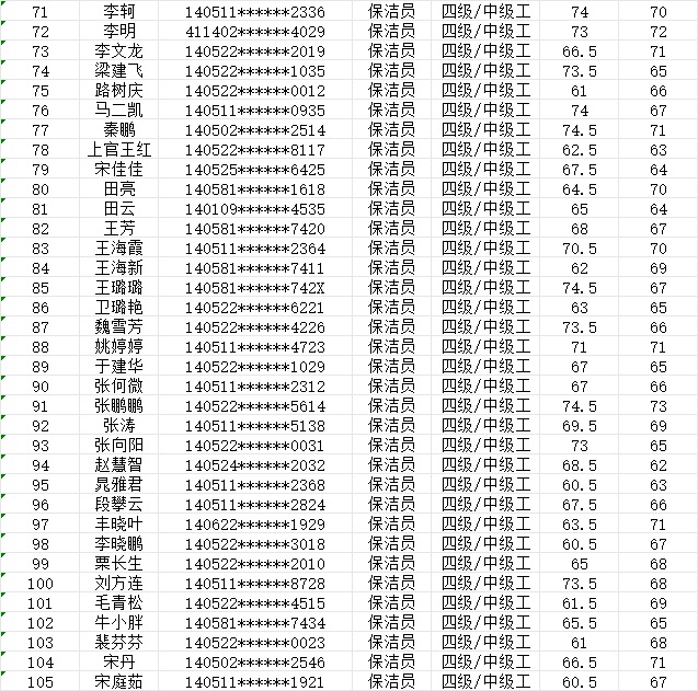 2024年1月20日第2批保潔員中級(jí)認(rèn)定人員成績公示