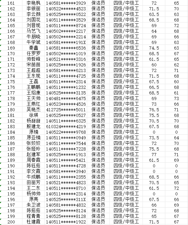 晉城市潔霸清潔服務(wù)股份有限公司職業(yè)技能等級認(rèn)定中心現(xiàn)將2024年2月4日認(rèn)定人員成績公示如下: