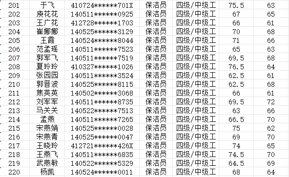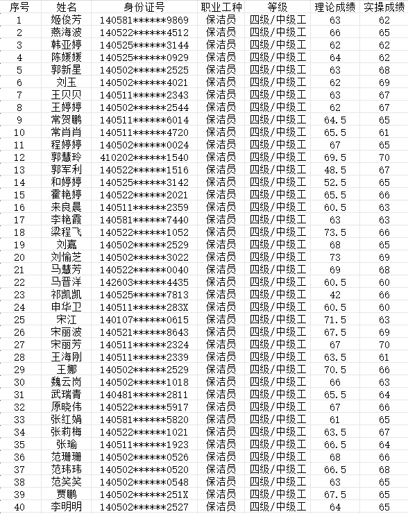 晉城市潔霸清潔服務(wù)股份有限公司職業(yè)技能等級認(rèn)定中心現(xiàn)將2024年2月25日認(rèn)定人員成績公示如下: