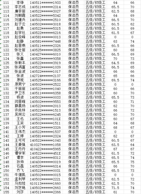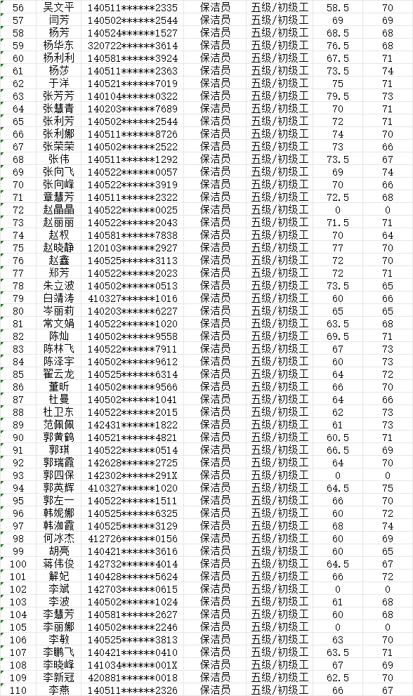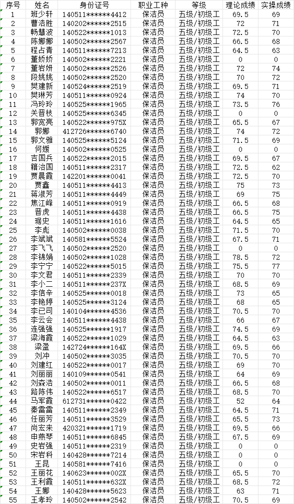 晉城市潔霸清潔服務股份有限公司職業(yè)技能等級認定中心現將2024年7月27日認定人員成績公示如下: